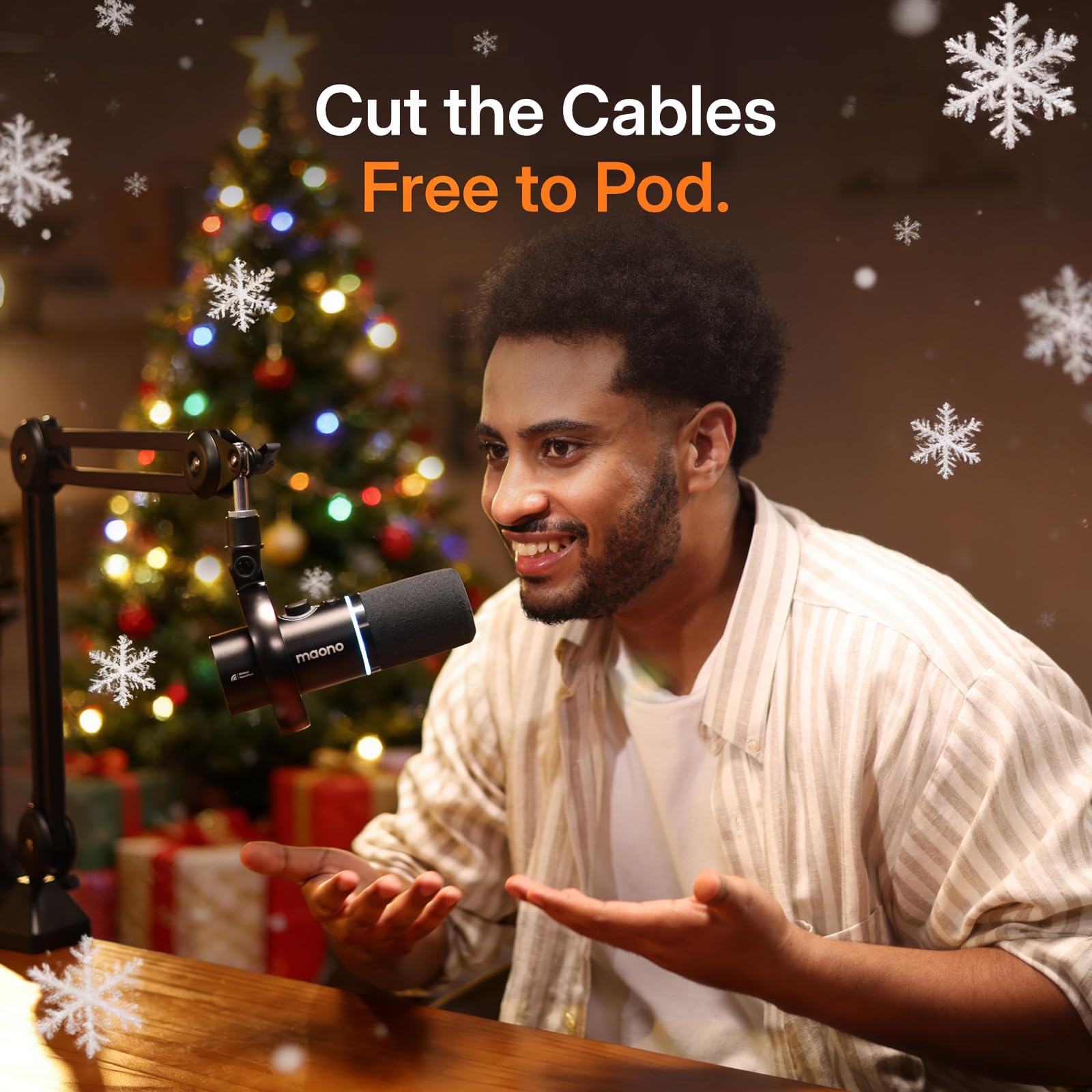 - Cut the Cables, Free to Pod - Dynamic microphone MAONO PD200W hybrid enjoy 3 ways for broadcast audio: go wireless for maximum freedom, USB for easy plug-and-play on phone, tablet, or computer, or XLR for a pro-level stable setup with audio interfaces
