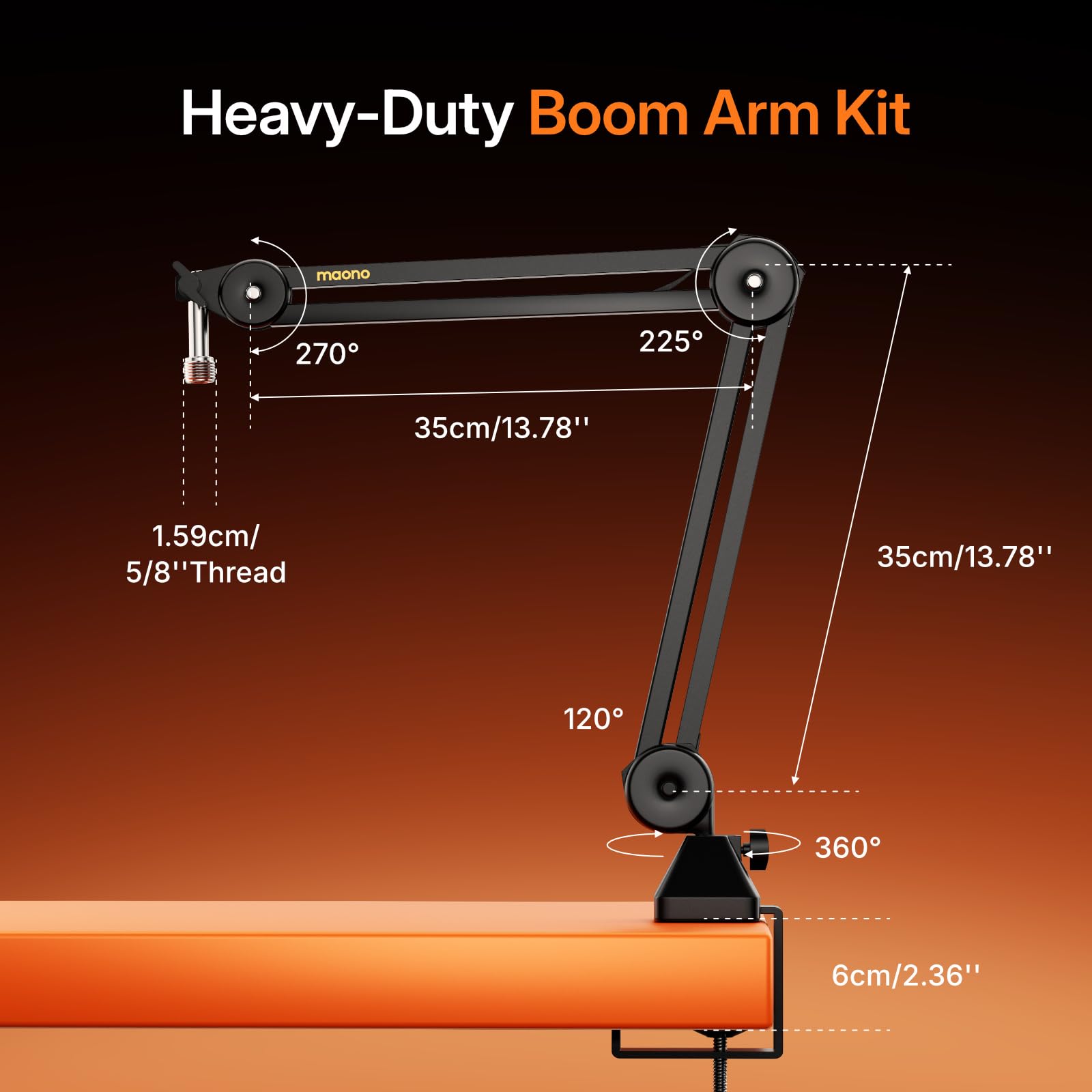 • MAONO PD200W Hybrid Wireless Podcast Microphone for PC, XLR USB Dynamic Mic Kit with Boom Arm, Software, Noise Cancellation, for Vocal Recording, Streaming, Content Creation, Home Studio, Voiceover